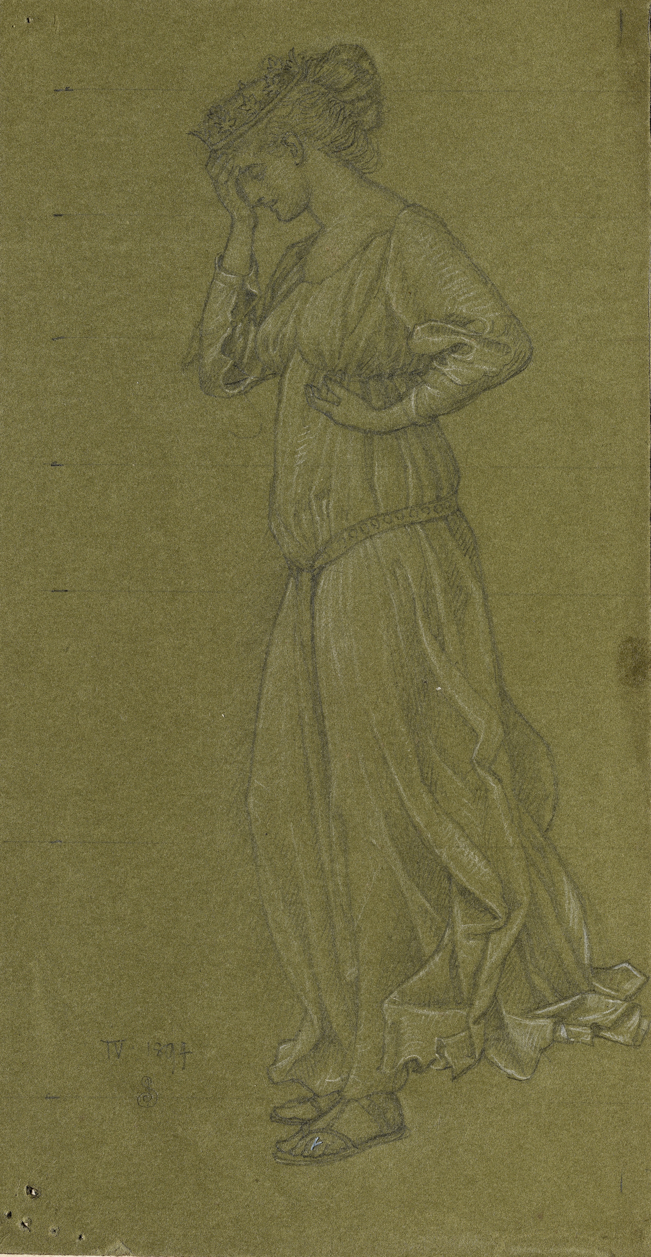 Dated and signed l.l.: iv.1894 / JES and inscribed under mount Drapery Study with the artist’s address on the backboard (verso)