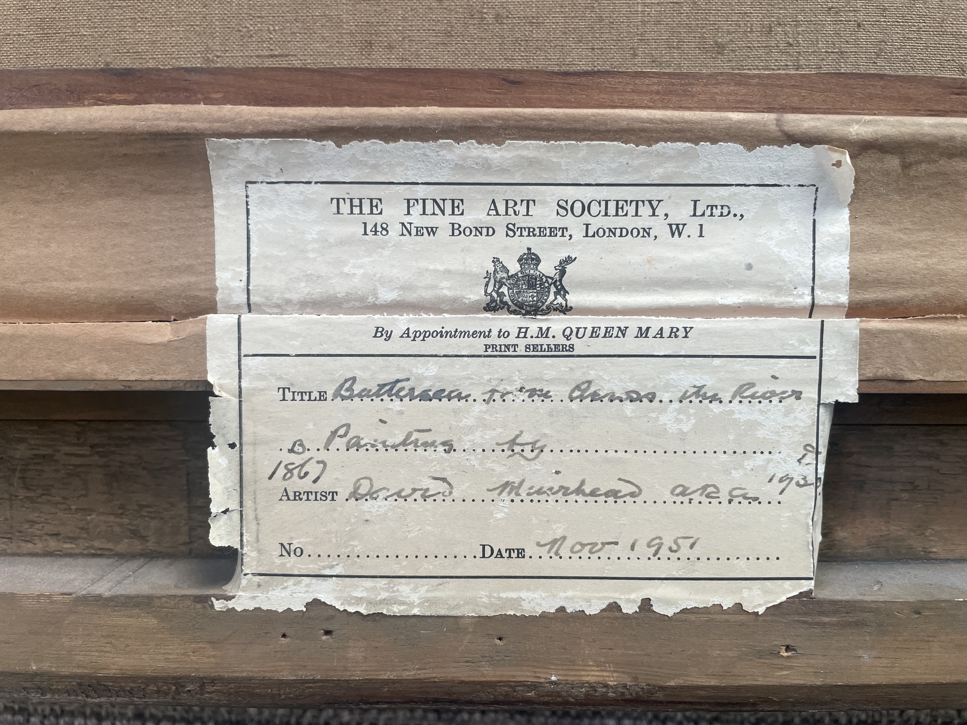 David Thomson Muirhead was born in Edinburgh, the son of an architect and master builder. He studied at the Trustees’ School, Edinburgh, Royal Scottish Academy School and then Westminster School of Art and the Royal Academy Schools. He exhibited at the Royal Academy from 1895 and was elected Associate Member in 1928. A landscape and figure painter, he was also a regular exhibitor at the New English Art Club, Royal Watercolour Society and Royal Society of British Artists. In 1911 he became a founder member of the National Portrait Society. He is presented in many UK public collections including the Tate Gallery, Victoria & Albert Museum and s similar Thames landscape, The Thames at Battersea, London, is in the collection of the Atkinson Art Gallery, Southport. He lived at 132 Cheyne Walk, Chelsea.