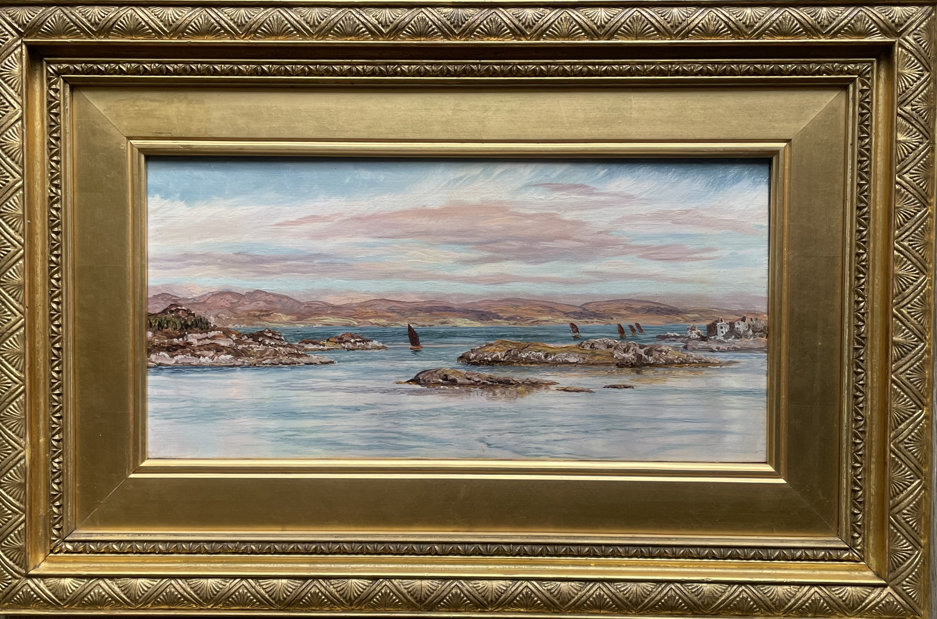 In the summer of 1886 Brett took a cottage on the Ayrshire coast and made a series of oil sketches that were later that year shown at the Fine Art Society, London. This view of the north of Loch Lomond near the village of Tarbet is a rare glimpse of a sunny day and blue sky as at the end of the holiday Brett commented on the poor weather he had experienced that summer: “My sketches will prove that a sunny day has been a very rare phenomenon and although I have never before seen Scotland so miserably dull and colourless … I have not seen a single fine cloud arrangement although I have always been on the lookout ....” (Payne & Brett, John Brett, 2010, p.156.)