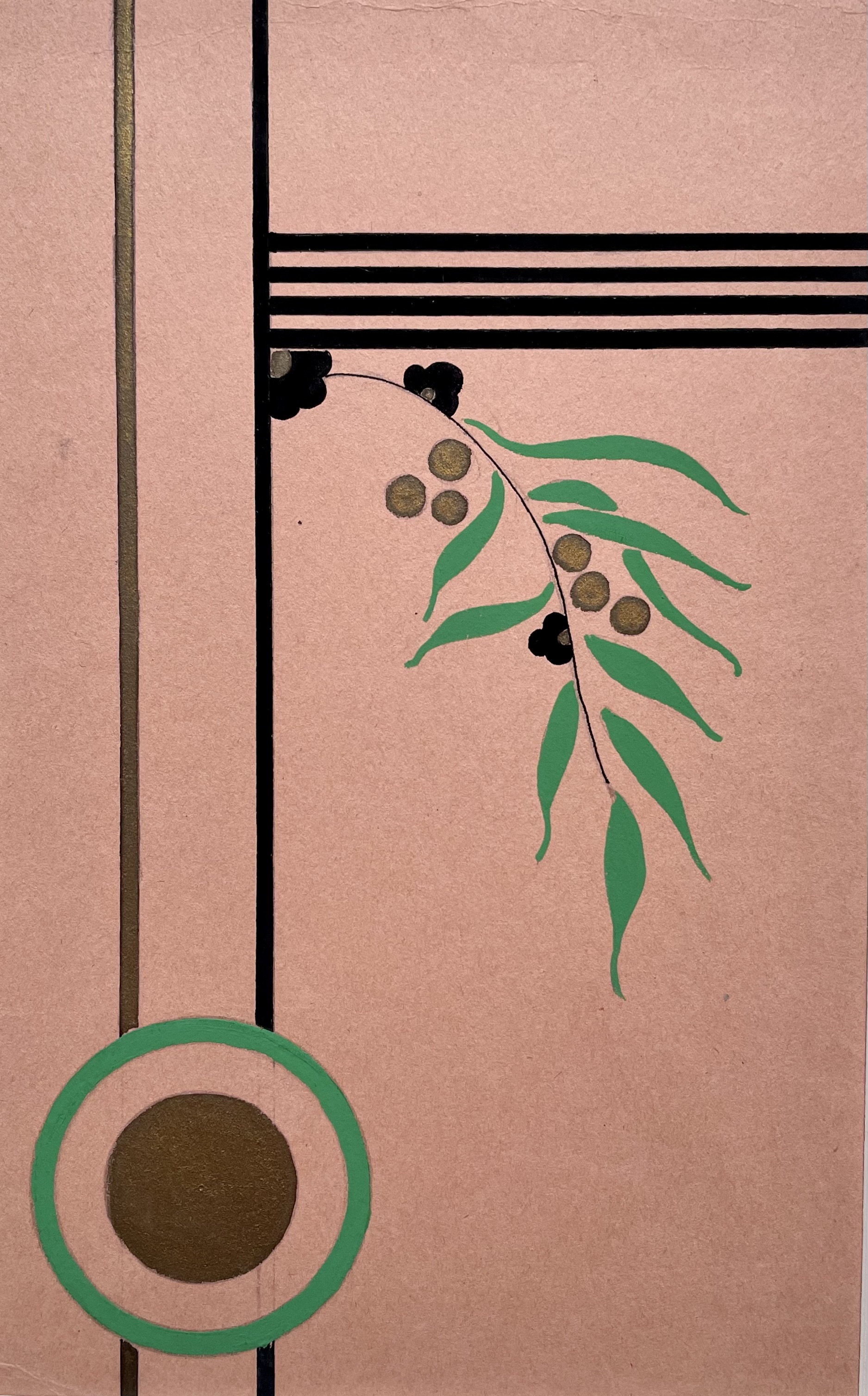 Gouache and gold paint on tinted paper