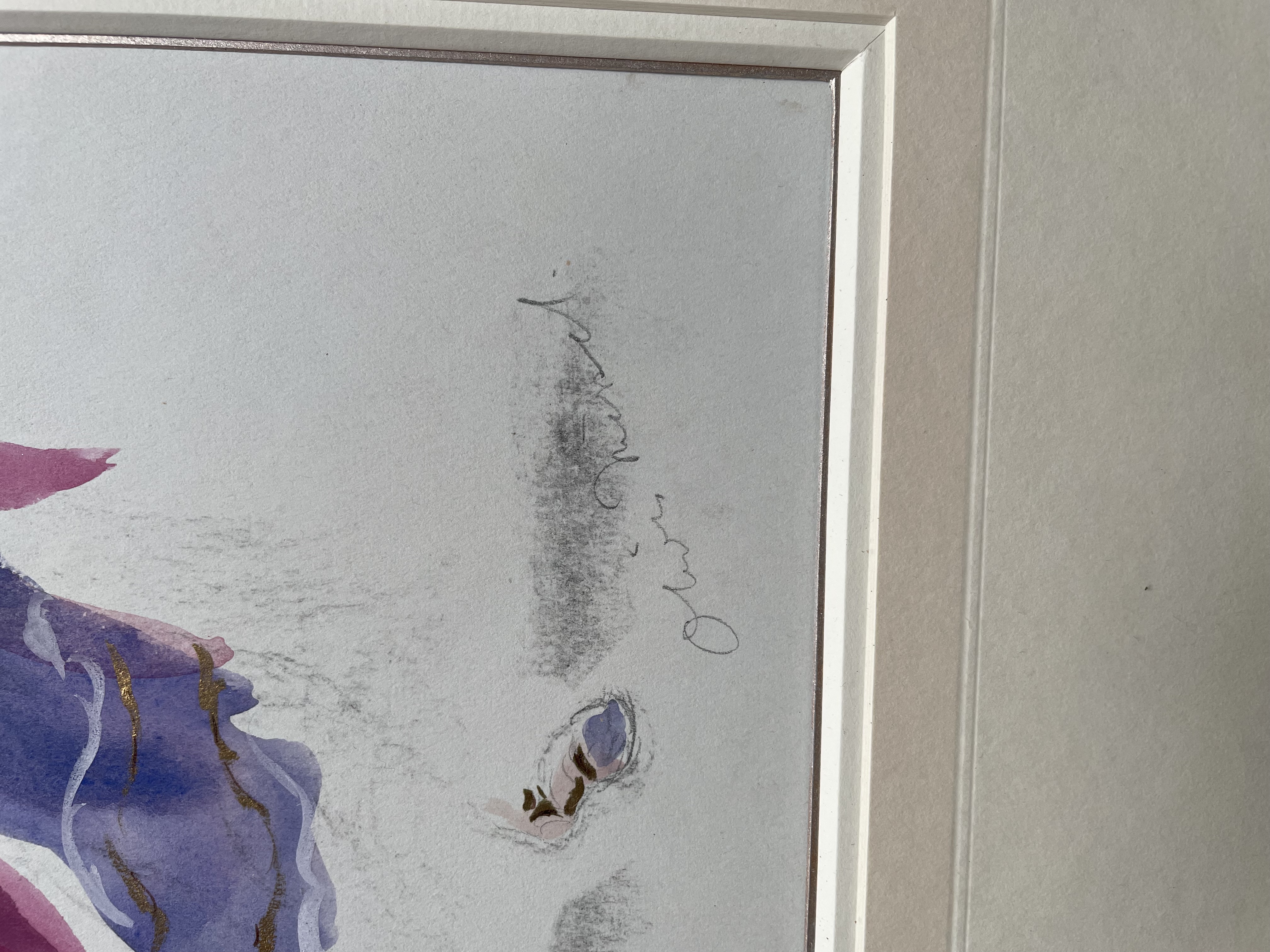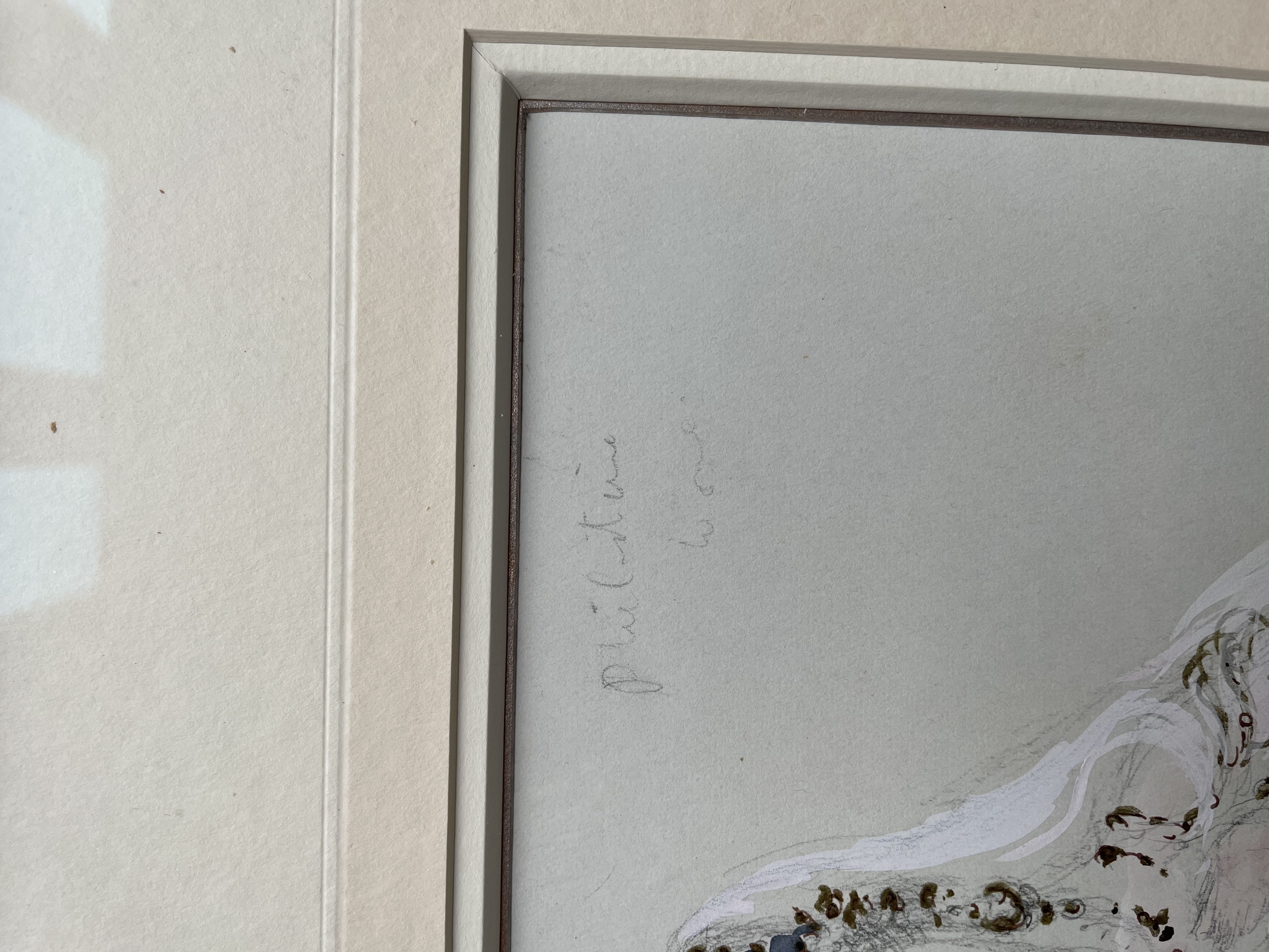 Watercolour heightened with gold and paint over chalk